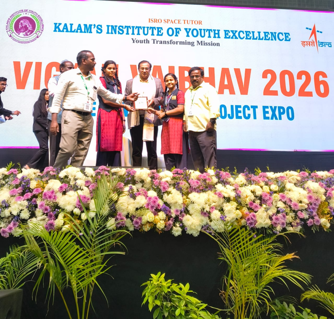 జనవాహిని ప్రతినిధి తాండూరు : జాతీయ విజ్ఞాన దినోత్సవం – 2026ను పురస్కరించుకుని నిర్వహించిన ప్రతిష్టాత్మక “విజ్ఞాన్ వైభవ్ 2.0” ఇండియన్ లెవల్ సైన్స్ ప్రాజెక్ట్ ఎక్స్పోలో తాండూరు పట్టణానికి చెందిన అక్షర హై స్కూల్ విద్యార్థులు జాతీయ స్థాయి పురస్కారాన్ని గెలుచుకున్నారు.కైట్ ఫౌండేషన్ ఆధ్వర్యంలో ఇస్రో , డి.ఆర్.డి.ఓ, ఏఈఎస్ఐ మరియు టీ-వర్క్స్ సంస్థలు సంయుక్తంగా నిర్వహించిన ఈ ఎక్స్పోలో దేశవ్యాప్తంగా వివిధ రాష్ట్రాల నుండి వందలాది మంది విద్యార్థులు తమ వినూత్న ప్రాజెక్టులను ప్రదర్శించారు.వికారాబాద్ల్ జిల్లా ప్రతినిధులుగా పాల్గొన్న అక్షర హై స్కూల్ 10వ తరగతి విద్యార్థినులు ఆదితి మరియు సంజనా వైష్ణవ్, రూపొందించిన “మొబైల్ మైక్రోస్కోప్” ప్రత్యేక ఆకర్షణగా నిలిచింది. తక్కువ ఖర్చుతో, సులభంగా అందుబాటులో ఉండే వస్తువులతో సూక్ష్మజీవులను పరిశీలించేలా వారు చేసిన ఈ ప్రయోగం న్యాయనిర్ణేతల ప్రశంసలు పొందింది. ముఖ్యంగా గ్రామీణ ప్రాంత విద్యార్థులకు సైన్స్ పట్ల ఆసక్తి పెంచేలా ఈ ప్రాజెక్ట్ ఉందని నిపుణులు కొనియాడారు.ఈ సందర్భంగా ఐ.ఎస్.ఎస్ ను సందర్శించిన తొలి భారతీయుడు, ఇస్రో వ్యోమగామి శ్రీ శుభాంశు శుక్లా, డి.ఆర్.డి.ఓ మాజీ చైర్మన్ డా. జి. సతీష్ రెడ్డి విద్యార్థులను ప్రత్యేకంగా అభినందించారు. అనంతరం, ఎన్.ఆర్.ఎస్.సి డైరెక్టర్, స్పేస్ సైంటిస్ట్ డా. ప్రకాష్ చౌహాన్ చేతుల మీదుగా విద్యార్థులు ప్రత్యేక పురస్కారాన్ని అందుకున్నారు.విద్యార్థుల విజయానికి కృషి చేసిన గైడ్ టీచర్లు శ్రీ రవి కుమార్, శ్రీకాంత్ కులకర్ణిలను పాఠశాల ప్రధానోపాధ్యాయులు మోహన్ కృష్ణ గౌడ్ అభినందించారు. విద్యార్థుల్లో పరిశోధనా తత్వాన్ని పెంపొందించడమే తమ లక్ష్యమని పేర్కొన్నారు. ఈ కార్యక్రమంలో పాఠశాల యాజమాన్యం ప్రవీణ్, యూనుస్, రవీందర్, శోభరణి మరియు తల్లిదండ్రులు పాల్గొని విద్యార్థుల ప్రతిభను చాటిన అక్షర పాఠశాల బృందానికి శుభాకాంక్షలు తెలిపారు.