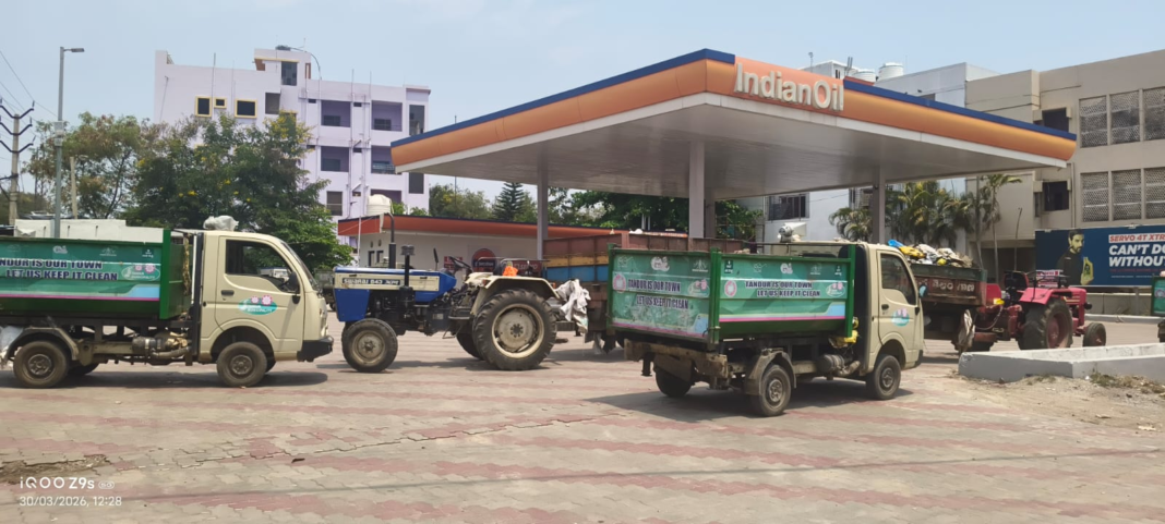 జనవాహిని ప్రతినిధి తాండూరు : ఆస్తి పన్ను కట్టకుండా మొండికేస్తున్న వారికి మున్సిపల్ అధికారులు చుక్కలు చూపిస్తున్నారు. “సార్.. పన్ను కట్టండి” అని నోటీసులు ఇచ్చే కాలం పోయింది.. ఇప్పుడు “బండి వచ్చిందీ.. బకాయి కట్టమంటోంది” అన్నట్టుగా సీన్ మారిపోయింది!హైదరాబాద్ రోడ్డు మార్గంలోని ఇలాహి ఫీలింగ్ స్టేషన్ దగ్గర నేడు హైడ్రామా చోటుచేసుకుంది. భారీగా పేరుకుపోయిన ఆస్తి పన్ను బకాయిల వసూలు కోసం మున్సిపల్ కమిషనర్ మధుసూదన్ రెడ్డి స్వయంగా రంగంలోకి దిగారు.అయితే ఇదేదో సాదాసీదా తనిఖీ అనుకుంటే పొరపాటే..! వరుసగా మున్సిపల్ ఆటోలు, ట్రాక్టర్లను బంక్ ముందు నిలిపి..వినూత్న రీతిలో నిరసన తెలుపుతూ..పన్ను కట్టండి.. నగరాన్ని రక్షించండి” అంటూ బాకీదారులకు సెగ పుట్టించారు.ఈ సందర్భంగా కమిషనర్ మాట్లాడుతూ, పన్ను చెల్లింపులో నిర్లక్ష్యం వహిస్తే ఎంతటి వారినైనా వదిలే ప్రసక్తే లేదని స్పష్టం చేశారు. ఇప్పటికే గడువు ముగిసినందున, వెంటనే స్పందించని పక్షంలో సదరు ఆస్తులను సీజ్ చేస్తామని బాహాటంగానే హెచ్చరించారు.