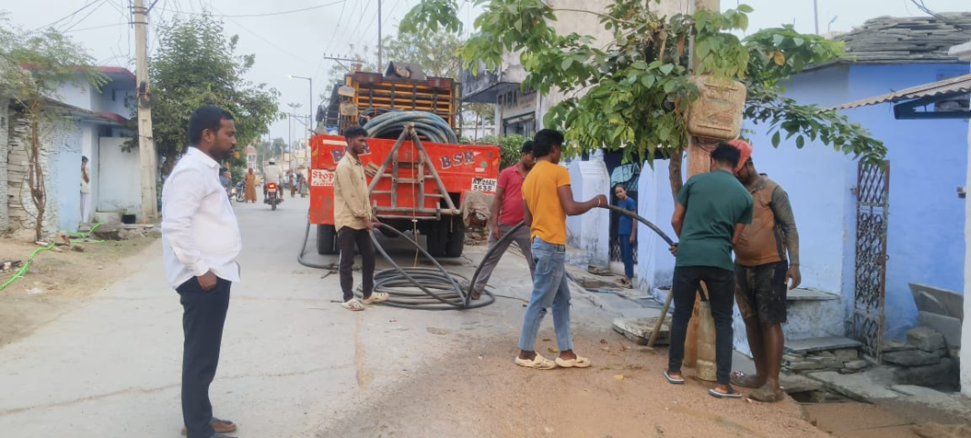 జనవాహిని ప్రతినిధి తాండూరు : ఎండలు ముదురుతున్న వేళ పాత తాండూరులోని అంబేద్కర్ నగర్ కాలనీలో నెలకొన్న తాగునీటి ఎద్దడిని వార్డు కౌన్సిలర్ దివిటీ ఎల్లప్ప పరిష్కరించారు. కాలనీలోని ప్రధాన బోరింగ్ పాడైపోవడంతో స్థానికులు పడుతున్న ఇబ్బందులను గమనించిన ఆయన, మున్సిపల్ చైర్పర్సన్ సహకారంతో తక్షణ చర్యలు చేపట్టారు. చైర్పర్సన్ నీరజ బాల్ రెడ్డి ఆదేశాల మేరకు మున్సిపల్ సిబ్బందితో మాట్లాడి, పాడైన మోటార్ను బయటకు తీయించి రిపేర్ చేయించారు. అనంతరం బోరింగ్ను ఫ్లషింగ్ చేయించి, నీటి లభ్యత పెరిగేలా చర్యలు తీసుకున్నారు. ఎండల తీవ్రత ఎక్కువగా ఉన్న తరుణంలో, కాలనీ వాసుల ఇబ్బందులను అర్థం చేసుకుని స్వయంగా పర్యవేక్షించి బోరింగ్ను పునరుద్ధరించడం పట్ల స్థానికులు హర్షం వ్యక్తం చేస్తున్నారు. ఈ సందర్భంగా కౌన్సిలర్ దివిటీ ఎల్లప్ప మాట్లాడుతూ.. వార్డులో ప్రజలకు కనీస సౌకర్యాల విషయంలో ఎటువంటి ఇబ్బందులు కలగకుండా చూస్తామని, నీటి సమస్య తలెత్తకుండా మున్సిపల్ యంత్రాంగం అప్రమత్తంగా ఉందన్నారు. తమ విన్నపానికి సానుకూలంగా స్పందించిన మున్సిపల్ చైర్పర్సన్ నీరజ బాల్రెడ్డి కి ఈ సందర్భంగా ఆయన కృతజ్ఞతలు తెలిపారు.