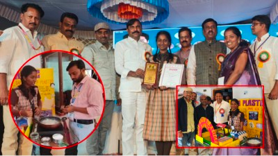 జనవాహిని ప్రతినిధి తాండూరు : పట్టణంలోని విశ్వవేద హైస్కూల్ విద్యార్థిని ఎం. వర్షిత రాష్ట్ర స్థాయి సైన్స్ ఫెయిర్లో అద్భుత ప్రతిభ కనబరిచి ప్రథమ బహుమతిని కైవసం చేసుకుంది. కామారెడ్డి సమీపంలోని పాత రాజంపేట విద్యానికేతన్ హైస్కూల్ (అబ్దుల్ కలాం ప్రాంగణం)లో జరిగిన 53వ రాష్ట్ర స్థాయి బాల వైజ్ఞానిక ప్రదర్శనలో ఈ ఘనత సాధించింది.వర్షిత ప్రదర్శించిన పర్యావరణ హితమైన ప్రాజెక్టు అందరినీ ఆకట్టుకుంది. ప్లాస్టిక్కు ప్రత్యామ్నాయంగా ఆహార ప్యాకేజింగ్, బ్యాగులు, ప్లేట్లు మరియు కప్పుల తయారీపై ఆమె తన పరిశోధనను వివరించింది. ఈ ఉత్పత్తులు సులభంగా భూమిలో కలిసిపోయే (బయోడిగ్రేడబుల్) గుణాన్ని కలిగి ఉండటమే కాకుండా, మట్టి మరియు నీటి కాలుష్యాన్ని నివారిస్తాయి. సాధారణ ప్లాస్టిక్తో పోలిస్తే ఇవి పర్యావరణానికి ఎంతో సురక్షితమని వర్షిత తన ప్రాజెక్ట్ ద్వారా నిరూపించింది.ఈ పోటీల్లో విజేతగా నిలిచిన వర్షితకు కామారెడ్డి ఎమ్మెల్యే కటిపల్లి వెంకటరమణారెడ్డి మరియు గ్రాడ్యుయేట్ ఎమ్మెల్సీ అంజిరెడ్డి చేతుల మీదుగా ప్రశంసా పత్రం, మెమెంటో అందజేశారు. రాష్ట్ర స్థాయిలో మొదటి బహుమతి సాధించిన వర్షిత, ఈ నెల 18న జరగనున్న ‘సౌత్ ఇండియా సైన్స్ ఫెయిర్’కు తెలంగాణ తరపున ఎంపికైంది.వర్షిత సాధించిన ఈ విజయం పట్ల విశ్వవేద హైస్కూల్ కరస్పాండెంట్ గణేష్ కుమార్, ప్రిన్సిపల్ వెంకటేష్ మరియు డైరెక్టర్ సుజాత సంతోషం వ్యక్తం చేశారు. జాతీయ స్థాయిలో కూడా వర్షిత రాణించాలని వారు ఆకాంక్షిస్తూ శుభాకాంక్షలు తెలిపారు.
